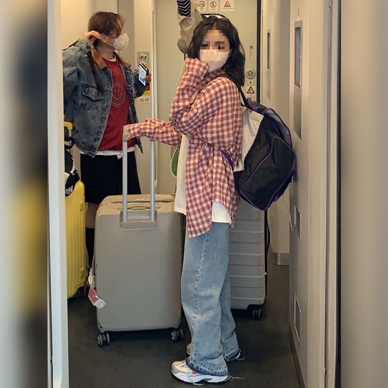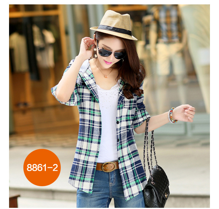 Women's long sleeve cotton loose Joker plaid shirt spring and autumn new women's shirt a generation of women's clothing