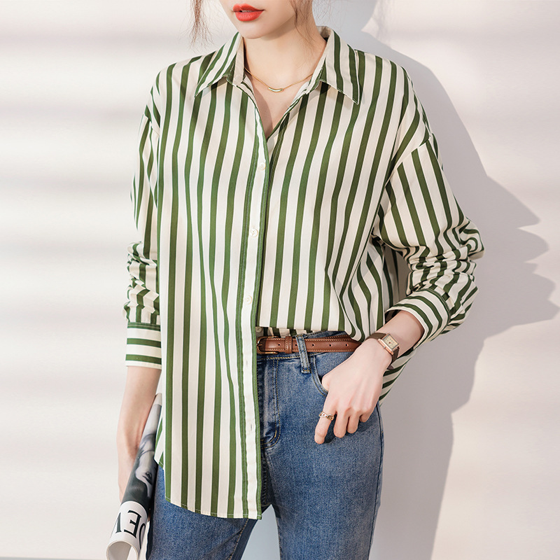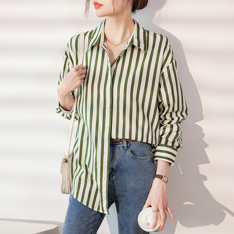 Real shot 2024 Autumn New lazy striped shirt top shirt casual simple commuter fresh Women