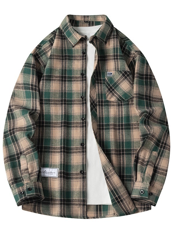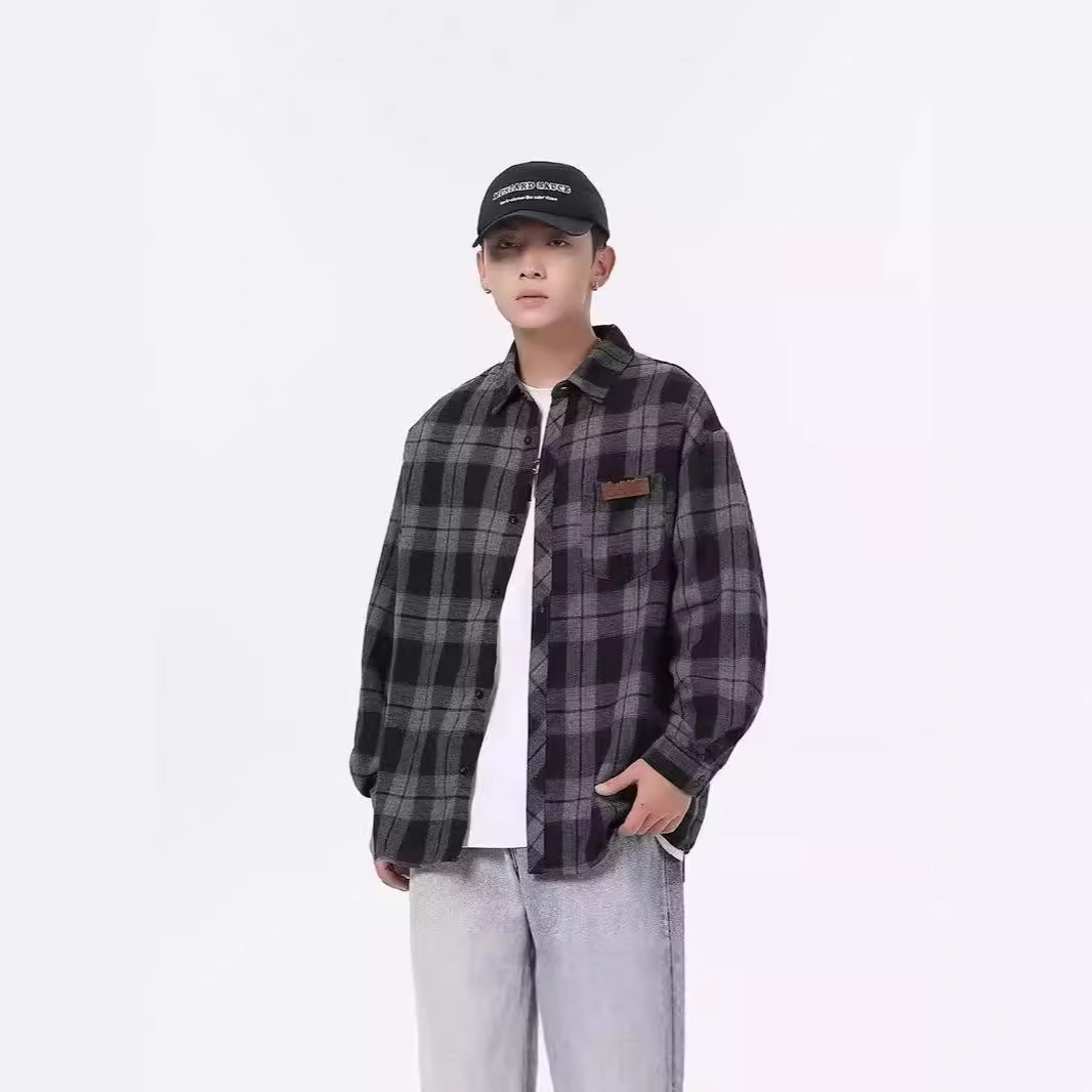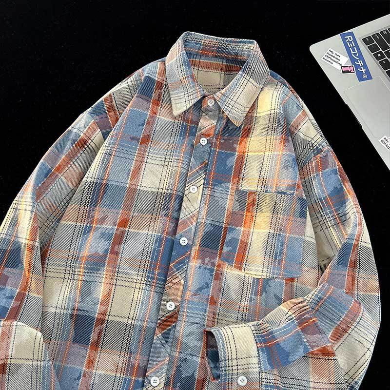 Japanese cityboy Contrast Color Plaid Shirt Men's Autumn High-end Handsome Fashionable Loose All-match Jacket Trendy
