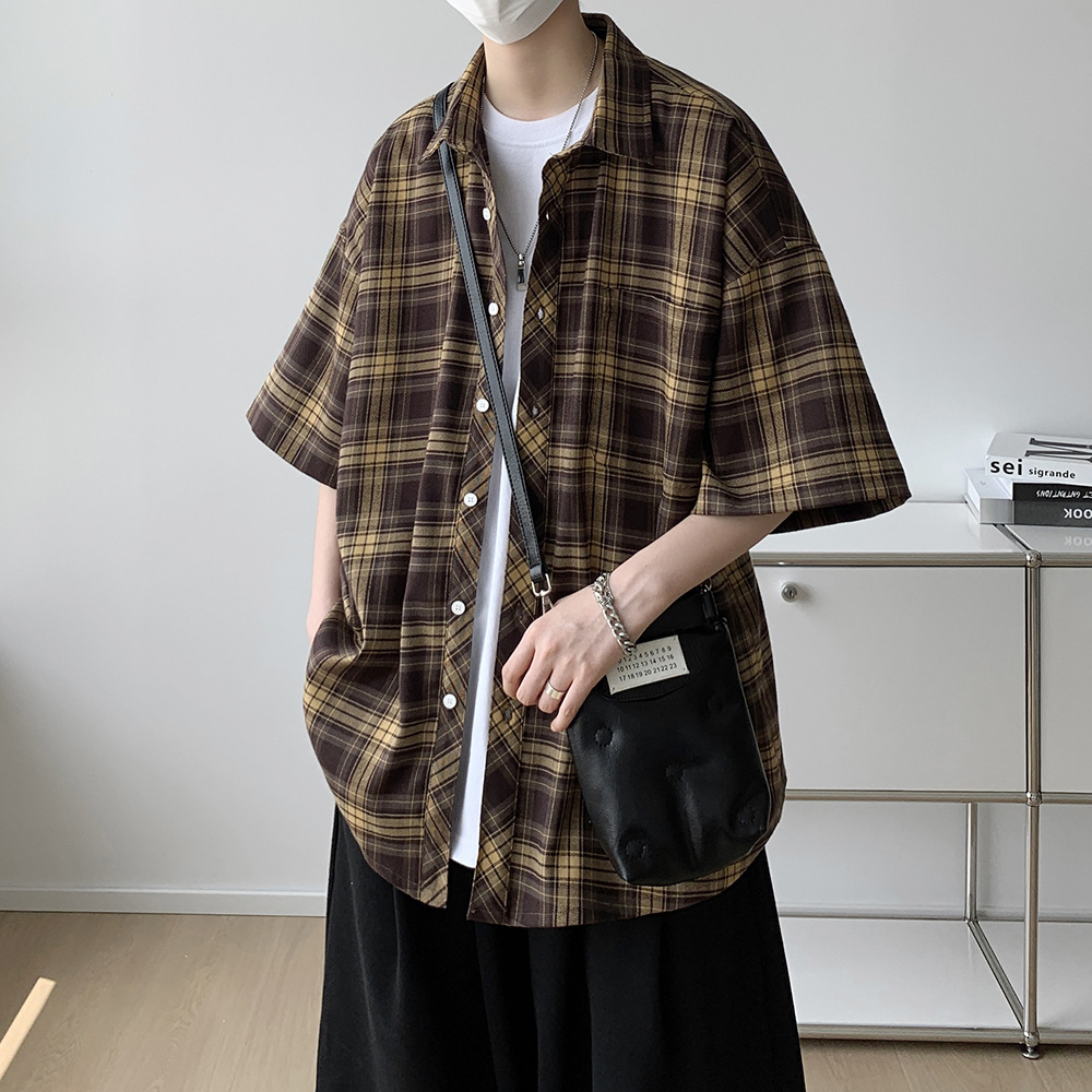 Spring and Summer Retro Plaid Shirt Men's Trendy Brand Casual Shirt Korean Style Fashionable Jacket Hong Kong Style Handsome Upper Clothes