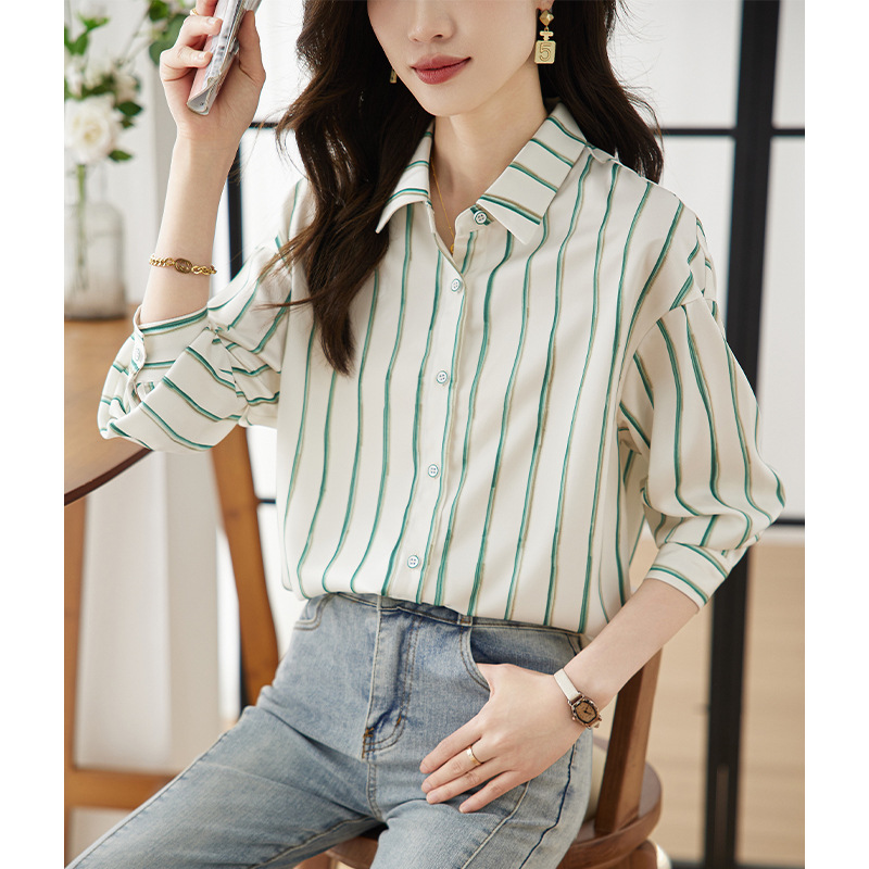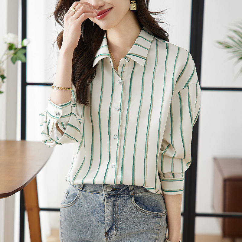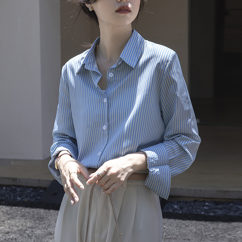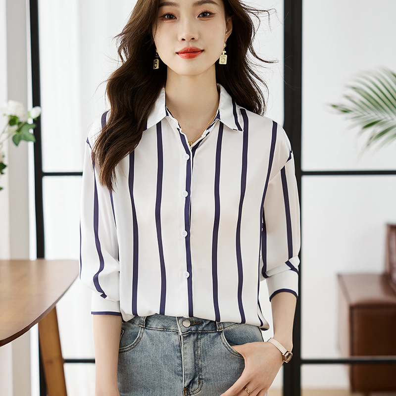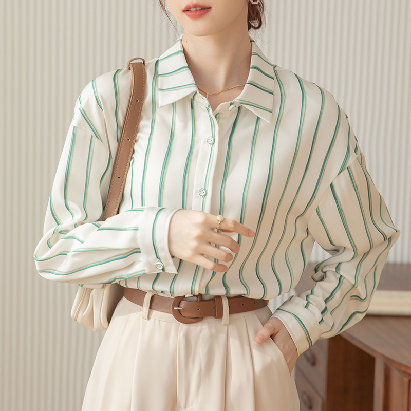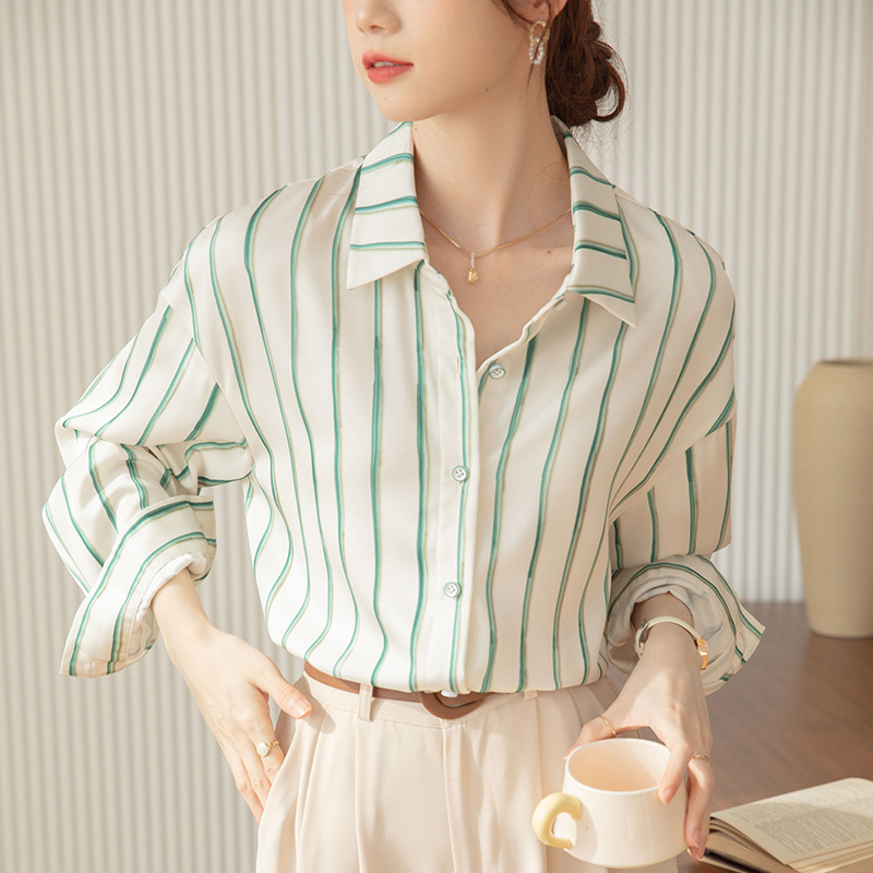 Strictly selected satin striped shirt for women Spring and Autumn 2024 New design sense niche chiffon top versatile shirt for women