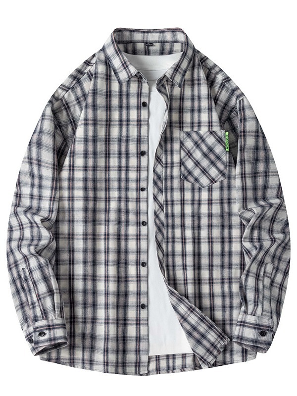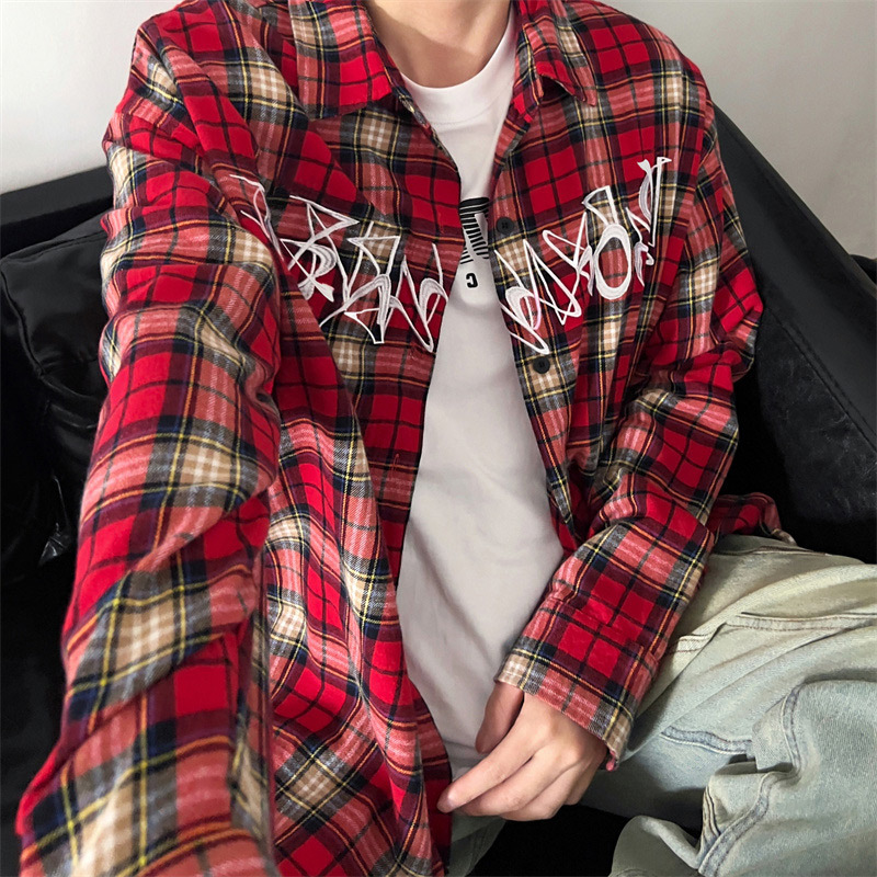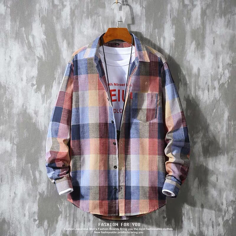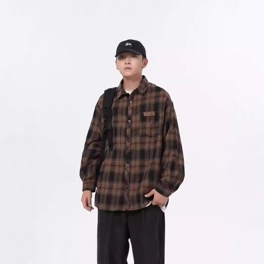 Hong Kong style plaid shirt men's long sleeve loose Korean fashion brand students autumn shirt coat shirt inch shirt wholesale