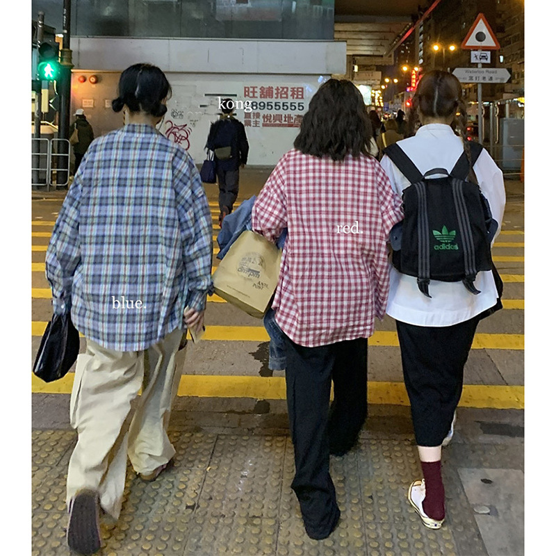 Cotton Plaid Shirt Women's 2022 Autumn New Korean Loose Long Sleeve Retro Hong Kong Style Foreign Style Student Jacket