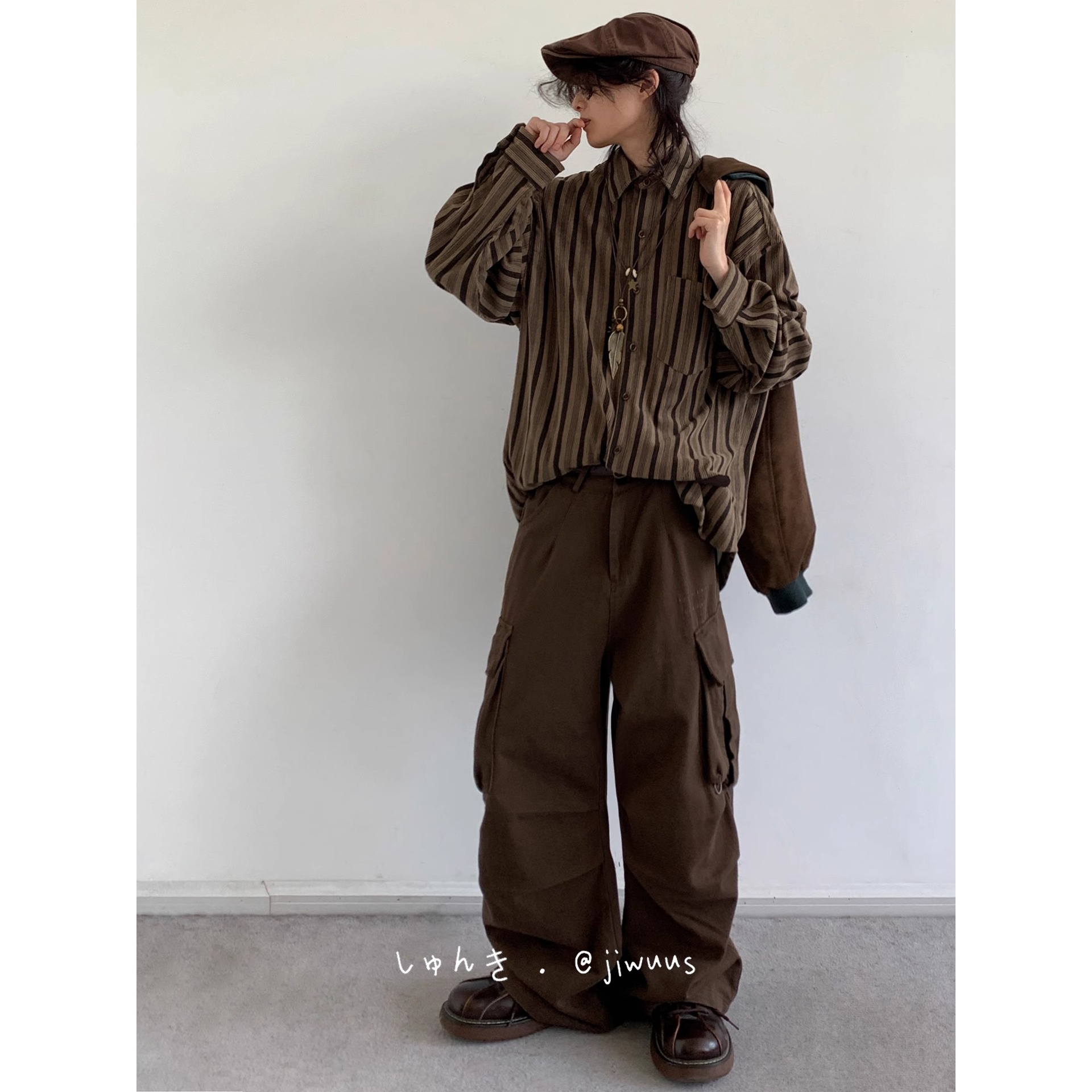 2024 real shot Autumn New lazy striped shirt design sense niche commuter simple loose shirt women's top