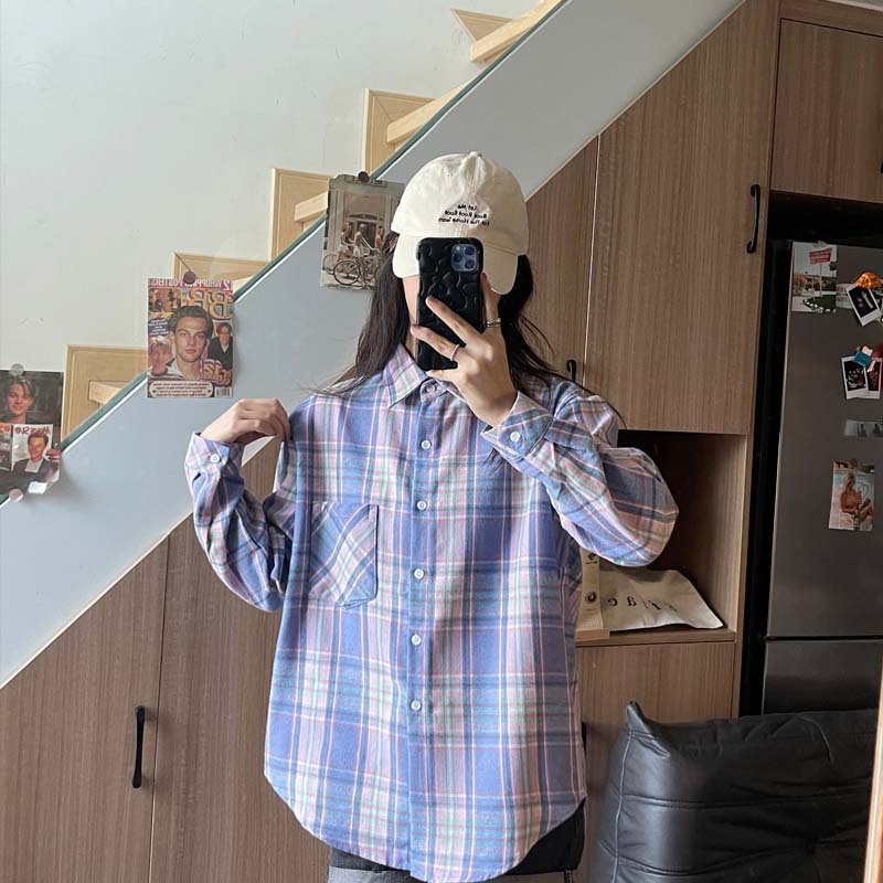 American Retro Plaid Women's Shirt Casual Plaid High Street Sweet Fresh High-end Sense Long Sleeve All-match Shirt Outer