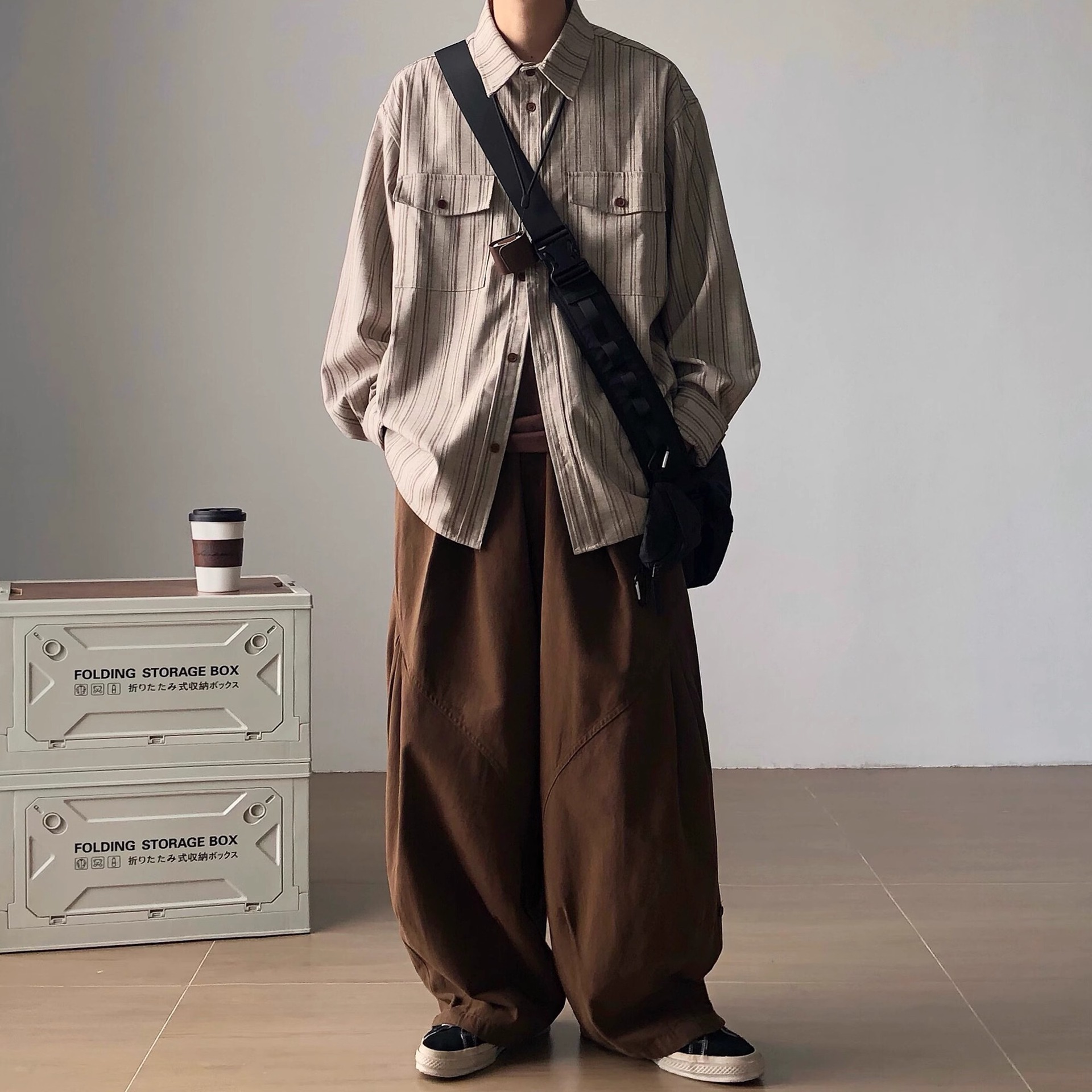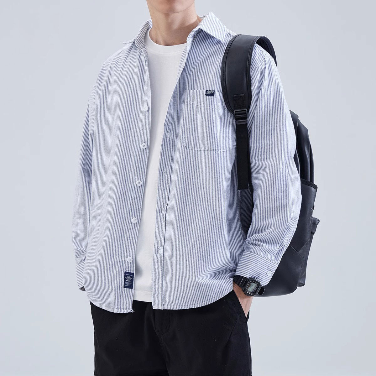 Japanese Style Retro Square Collar Vertical Stripe Shirt Men's Spring and Autumn New Academic Style Loose Casual Long Sleeve Shirt Jacket