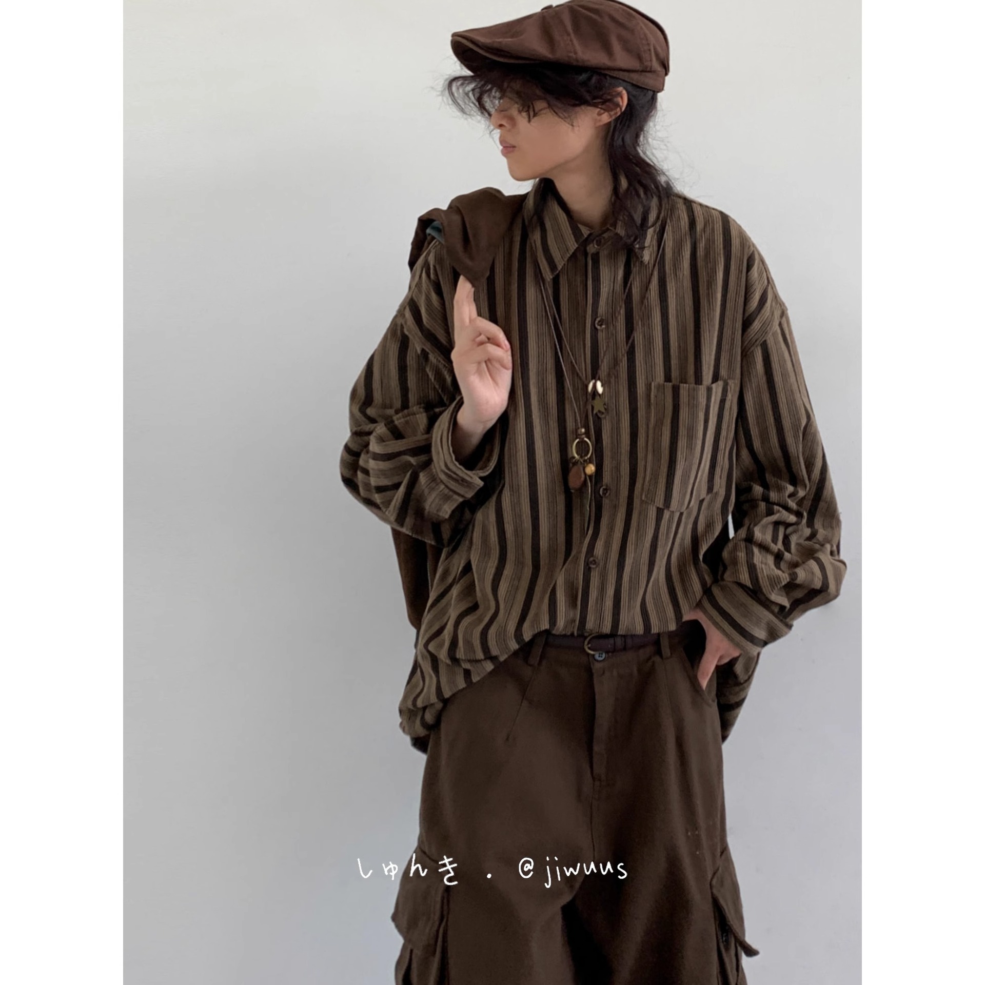 Japanese style cityboy striped shirt men's 2023spring and autumn new high-grade casual shirt jacket top