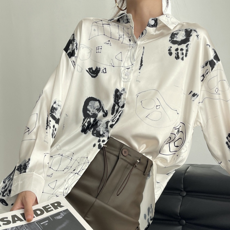 Strictly selected striped shirt top women's long sleeve 23 Autumn design sense niche retro acetate satin shirt Women's slimming